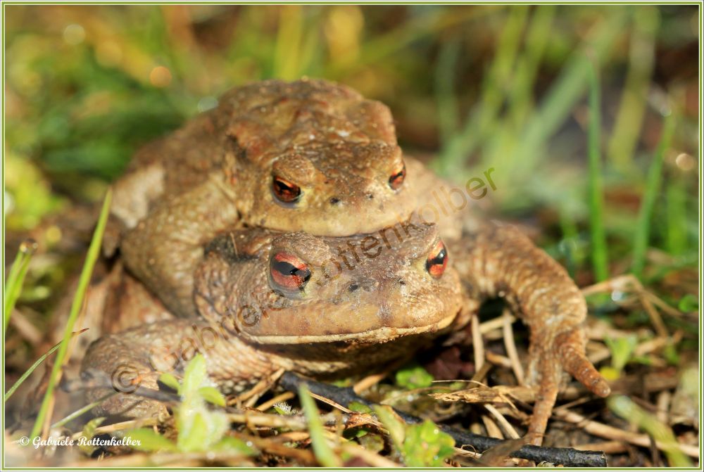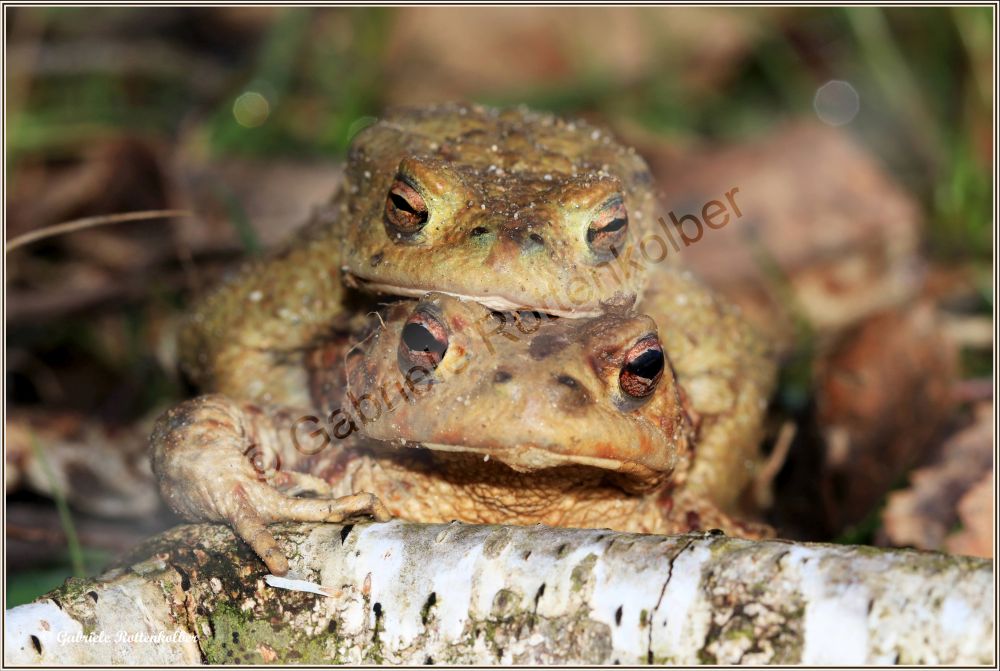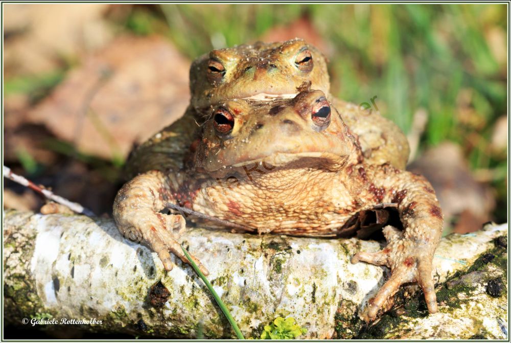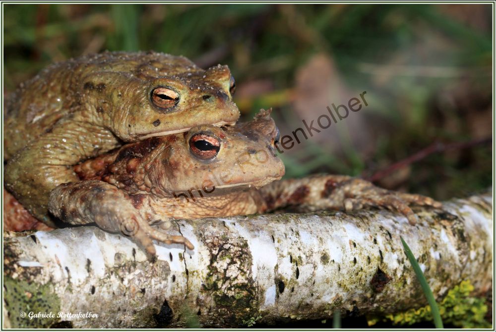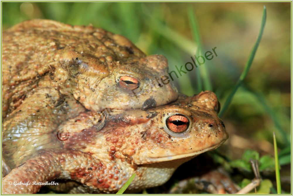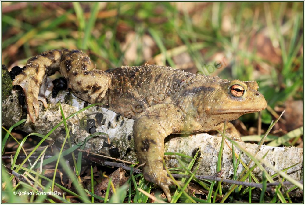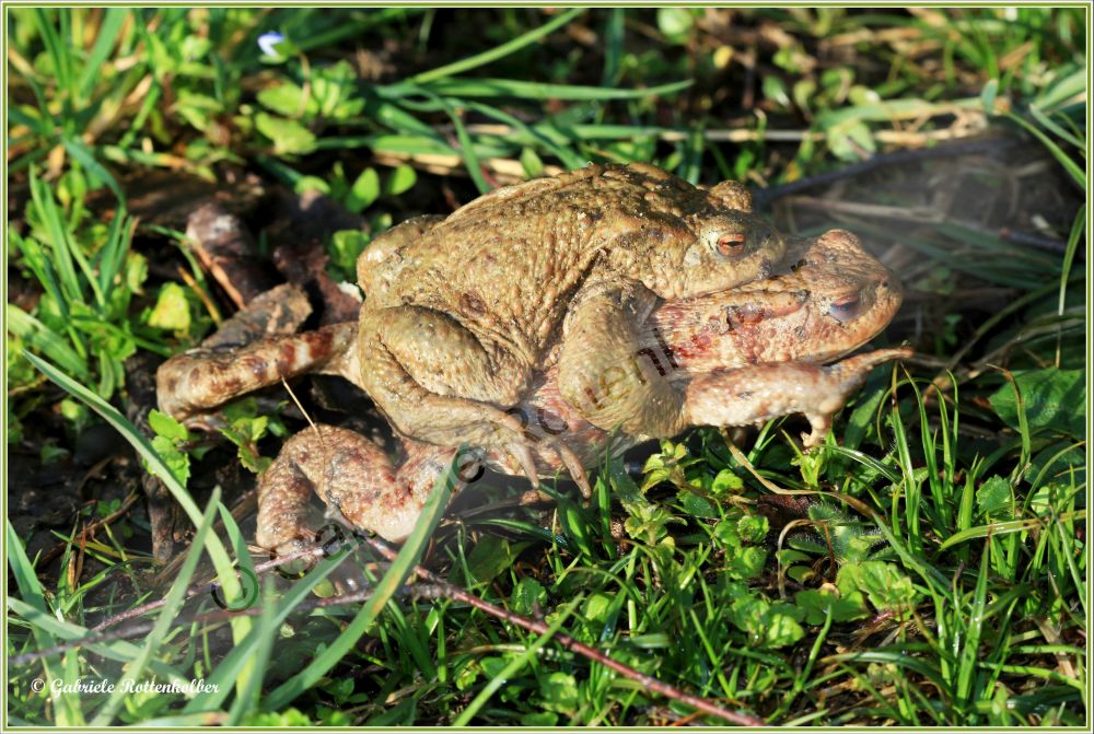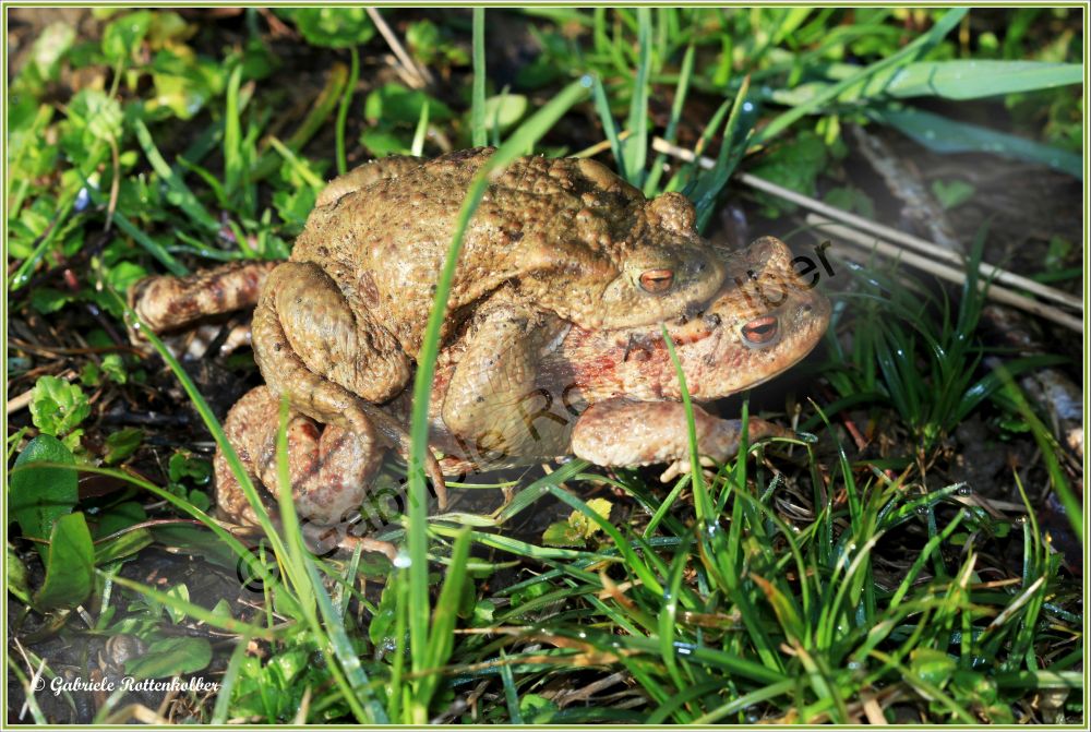 Die Erdkrötenmännchen haben keine Schallblasen. Der Laich besteht aus Schnüren die um Wasserpflanzen, Äste etc. gewickelt werden. Die Kaulquappen der Erdkröte, die oft in großen Schwärmen schwimmen, sind für Fische und Molche ungenießbar. Deshalb können Erdkröten auch Fischteiche als Laichgewässer nutzen.