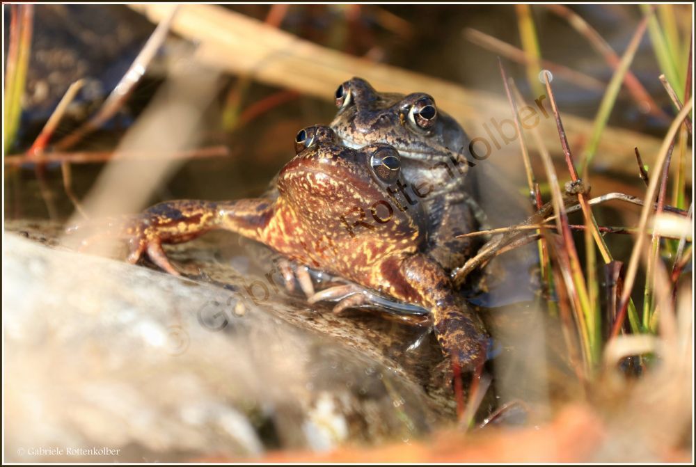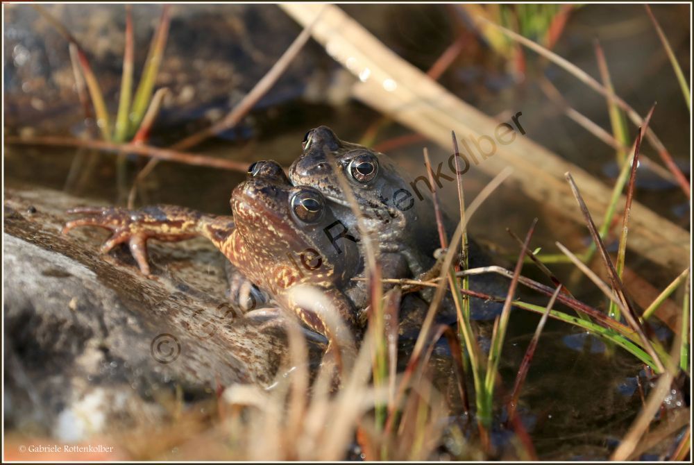 Im zeitigen Frühjahr, meist Mitte bis Ende März, erwachen die ortstreuen Grasfrösche und wandern bei Regenwetter an ihre Laichgewässer. Manche wandern auch schon im Herbst zu und überwintern gleich im Laichgewässer.
