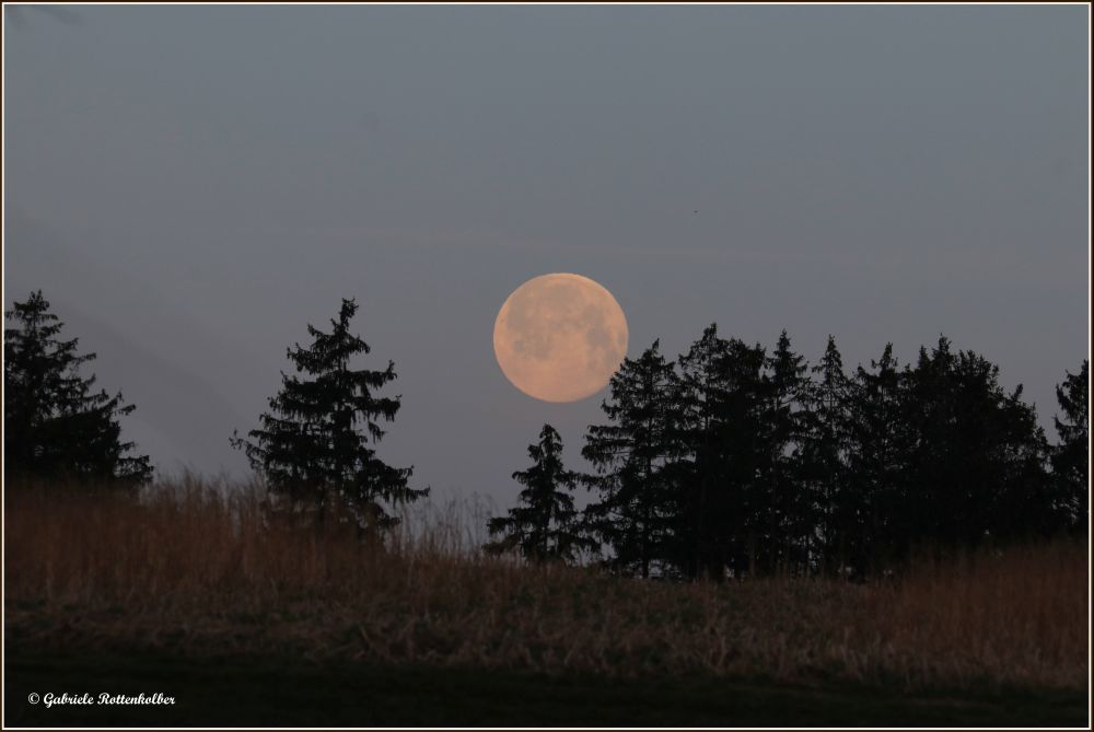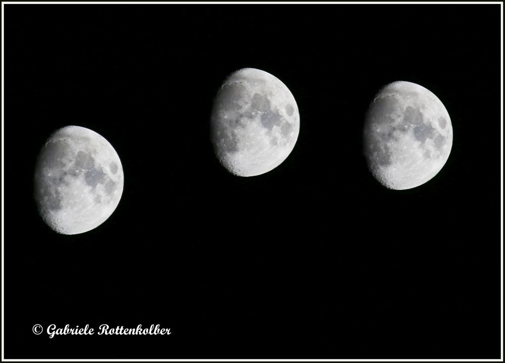 Der Mond hat faszinierender Weise sehr viele verschiedene Gesichter, die ich sofern möglich, fotografisch festgehalten habe. Auch etwas spielerisch mit Blick durch die Bäume oder tiefere Standpunkte, wobei es beim Untergang des Vollmondes tatsächlich so aussah als würde er abstürzen.